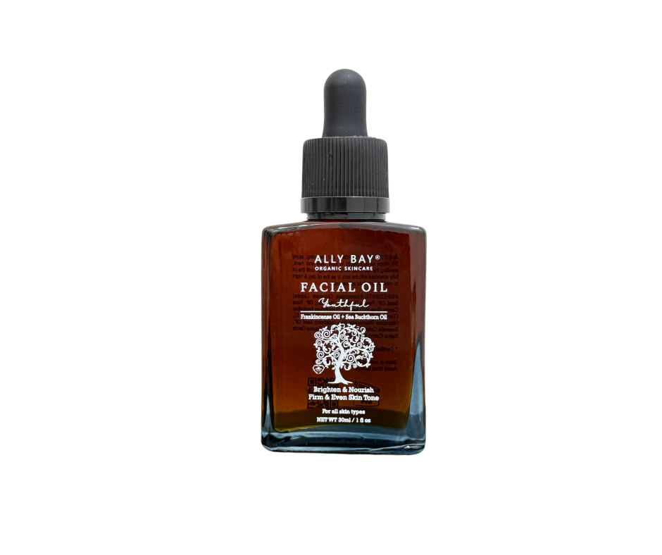 Ally Bay Facial Oil Youthful is infused with nutrient-rich oils such as Jojoba oil, Broccoli seed oil, Meadowfoam seed oil, Carrot seed oil, Sea Buckthorn CO₂ Extract, Rosehip CO₂ Seed Oil, and Ubiquinone (Q10). This luxurious, nutrient-rich facial oil formulated to deeply nourish the skin and support a healthy skin barrier. With regular use, skin appears smoother, firmer, and naturally radiant with a youthful glow, promoting long-lasting radiance.